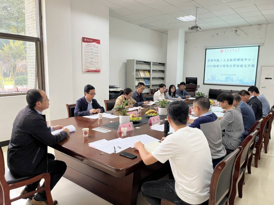 本次开题采取学生汇报、专家点评的形式,对开题报告中存在的问题进行把关并提出相应建议。首先由人文医学专业2022级硕士研究生肖敏、张玉,医疗服务管理专业2022级硕士研究生李威等3人通过PPT汇报的形式分别从论文选题依据、研究目的与意义、研究内容、研究方案、论文框架和创新之处等方面进行汇报及答辩。会上,专家们依次对每位研究生选题的可行性、论文结构的合理性、逻辑性等方面存在的不足提出了针对性的修改意见和建议,并根据研究生的答辩情况对研究生的开题报告进行了评审和表决,最终此次开题的3名研究生全部通过开题。专家组组长李岩教授最后对此次开题中同学们存在的共性问题进行了总结,并要求研究生结合专家意见修改与导师商议完善开题报告,认真开展后续课题研究。
