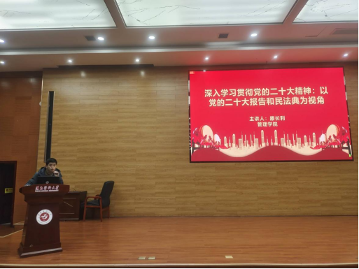 为进一步提高我院师生法治意识,学院邀请卫生经济学教研室副主任滕长利老师为全体师生进行民法典宣讲,滕老师以“深入学习贯彻党的二十大精神:以党的二十大报告和民法典为视角”为题,带领全体师生从中国式现代化的丰富内涵出发,深刻领会民法典中坚持的以人民为中心、绿色可持续发展等价值理念和制度规则。