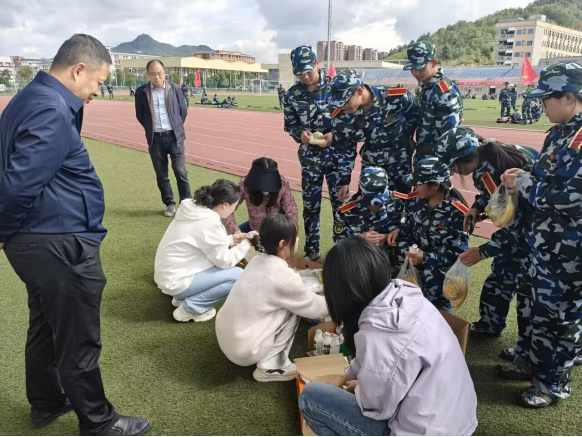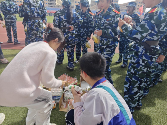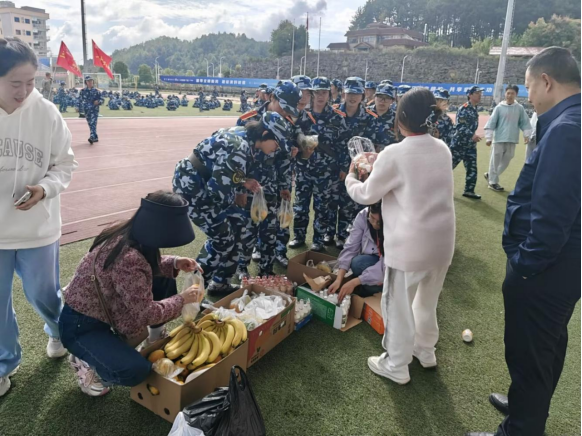 首先,张文辉代表管理学院党委对全体新生致以亲切的问候。通过与学生交流,张文辉简单了解了学生的军训情况,包括军训内容及学生的军训感受,对他们在军训中展现出的坚韧不拔的精神和昂扬的斗志给予了高度赞扬。接着,彭正员询问学生在军训中遇到的困难,并鼓励他们要坚定信念、克服困难,发扬“团结、紧张、严肃、活泼”的优良作风,营造一股积极向上的力量。最后,所有老师和班导一起向新生发放了水果、饮料等慰问品,鼓励新生珍惜军训时光,培养团队精神和纪律意识,并祝愿全体新生在军训中取得优异成绩。