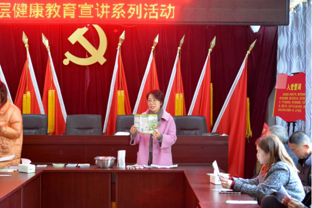 接下来,根据国家卫生健康委发布的《中国公民健康素养——基本知识与技能(2024年版)》(简称“健康素养66条”),并结合农村饮食中的高盐饮食问题,管理学院教工支部面向河渡村村民们开展了健康宣讲活动,此次宣讲由健康教育学副教授楚亚林老师主讲。楚老师通过讲解“健康素养66条”的核心内容,使大家了解了如何在日常生活中保持健康;在“高血压的防治”环节,为大家分享了高血压的危害、预防与管理方法;通过生动的讲解和现场演示,带领大家走近了“三减三健”行动——即减盐、减油、减糖,健康口腔、健康体重、健康骨骼。活动期间,支部还为大家准备了一些互动环节和健康促进实用物品,村民们活动参与积极性很强,纷纷表示收获健康知识,增强健康技能。