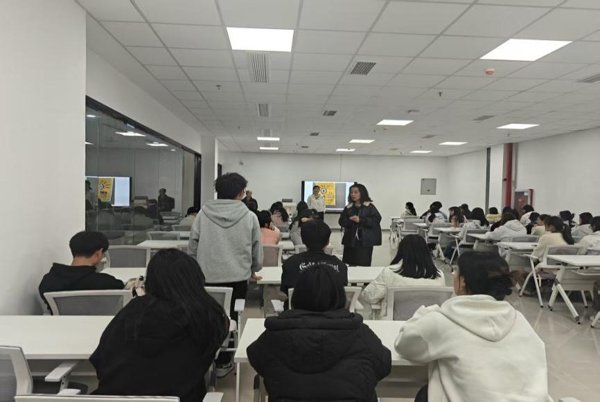 接下来,荣格心育陈锐主任对心光智联项目进行了全面解读。她首先分析了全国社会心理服务建设的整体形势与发展需求,随后详细阐述了项目的定位、核心服务内容、未来发展规划及后续具体工作安排。陈锐主任表示,中心将为参与志愿服务的大学生提供系统的专业培训,助力同学们提升心理服务相关技能;同时,针对大学生的创业就业需求也将配套开展专项辅导,全方位支持青年学子成长成才,鼓励大家在实践中提升自我、服务社会。