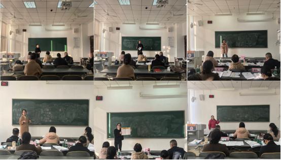 本次大赛评委阵容专业严谨,由学校教学督导组专家、学院督导组组长以及教研室主任等8名老师担任评委,确保评分公平公正、专业规范。比赛现场,参赛教师结合所授课程特点,通过现场抽签确定教学设计展示内容。展示过程中,老师们紧扣教学重难点,以小切口深挖知识内核,以点带面拆解教学内容,巧妙运用板书等教学工具,生动还原课堂实景,将抽象知识具象化,展现出极强的课堂把控能力。